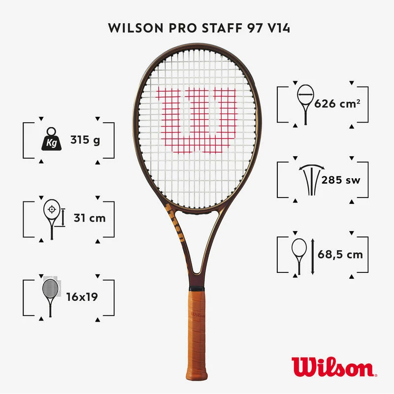 Cette raquette est conçue pour les joueurs et joueuses de tennis experts Ă la recherche de contrĂŽle et de stabilitĂ©. Raquette vendue non cordĂ©e.La cĂ©lĂšbre raquette Wilson Pro Staff 97 se refait une beautĂ© et se pare d’une nouvelle couleur cuivrĂ©e. Elle conserve ses attributs qui ont fait sa lĂ©gende : une stabilitĂ© et un contrĂŽle remarquable.