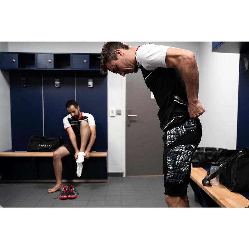 Notre équipe de conception a créé, pour le joueur de handball, un short de protection pour amortir les chocs lors de vos entraßnements et matchs.Ce short de protection amortit les chocs et prévient des éventuels blessures liées aux contacts pendant le jeu grùce aux renforts au niveau des hanches et du fessier.