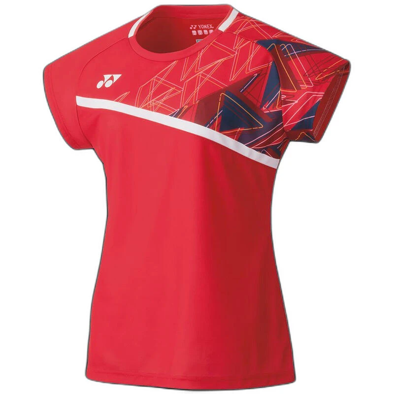 T-shirt femme au design dynamique Yonex, alliant la technologie Very Cool, Air Release et Power Sleeve pour une pratique de badminton confortable et performante.